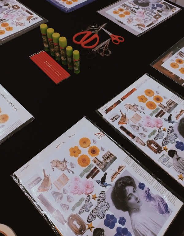 El taller propone una actividad de collage en la que podrás crear un mapa de tu vida, a partir de esa técnica de creación.