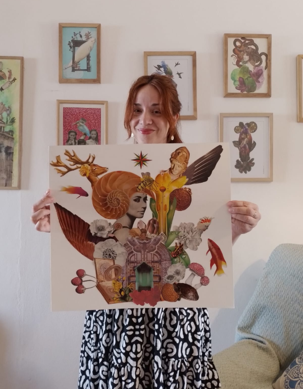 Te brindaré elementos para trabajar, revistas, papeles y soporte donde crear la obra y te guiaré con mi experiencia y conocimiento de la técnica.